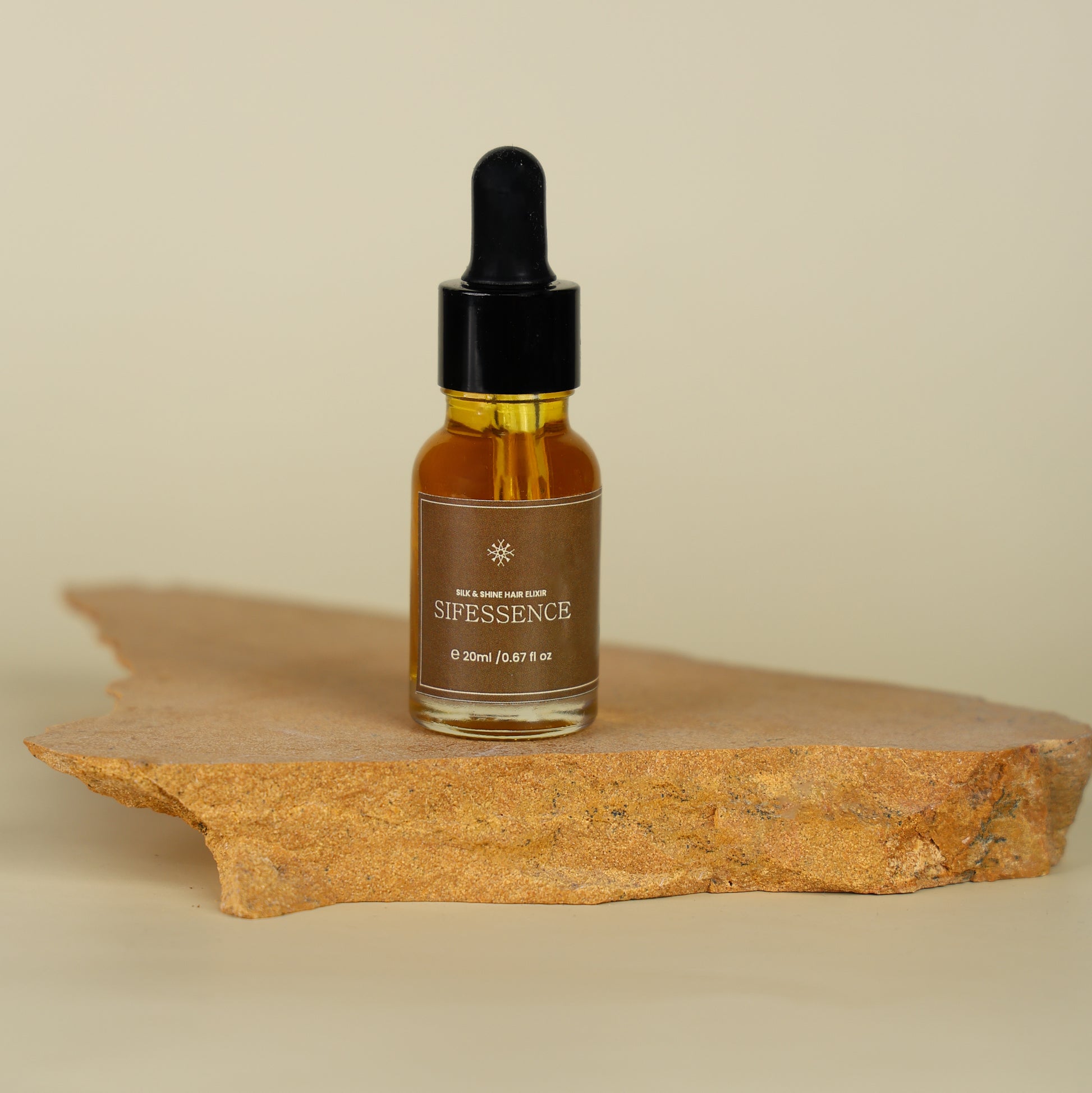A lightweight, nutrient-rich elixir that tames frizz, restores shine, and protects hair naturally.